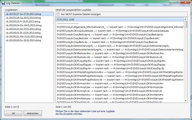 seine Ini-Datei bzw. die Datendateien (Copybackup.dat und Logdateien)
